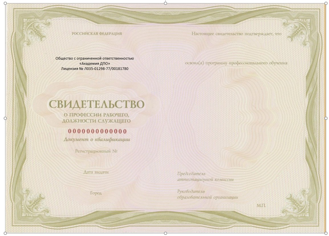 Свидетельство о присвоении профессии